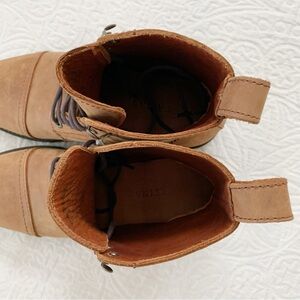 Marked size 8.5. Form-fitted boot made from full-grain leather upper with stitched toe cap, soft leather lining.