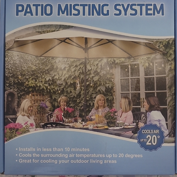 Installs in less than 10 minutes. Cools surrounding air temperatures up to 20 degrees. Great for cooling outdoor living areas.