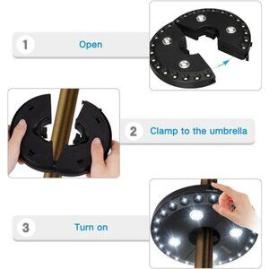 🧿2.Convenient--No need for extra tools,easy to clamp to your umbrella with the built-in auto adjustable strong clamp,also can be hung anywhere using the two hooks,pole mounted,fit poles with a diameter of approximately 0.86'' to 1.81''.