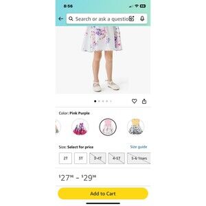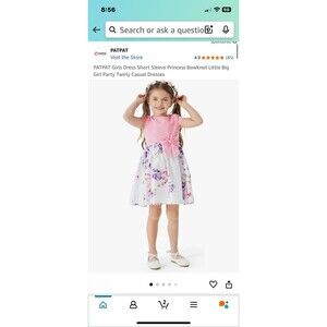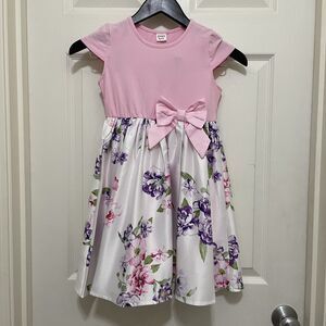 Patpat Girls Size 6-7y Short Sleeve Dress Easter Spring Bow Pink Purple Flowers