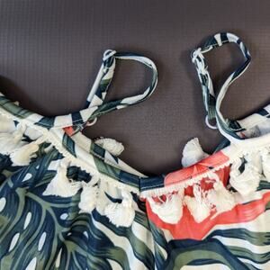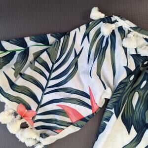 Patpat Off the Shoulder Palm Print Leaf Fringe Trim Dress Sz 3-4Y New