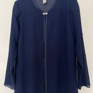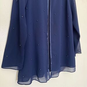 Patra Beaded Sheer Jacket 10 Navy Blue Jewel Clasp Pearls Dressy Evening Elegant