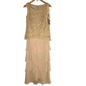 Patra Dress Beaded Sequin Lace Sleeveless Tiered Formal Evening Gown Peach NWT 6