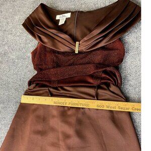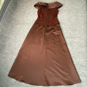 Patra Dress Womens 6 Brown Glitter Formal Gown Prom Satin Rhinestone Long off the shoulder