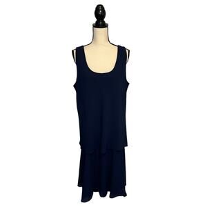 Patra Layered Dress Womens Plus Size 18 Navy Sleveless Lined Chiffon Sheer