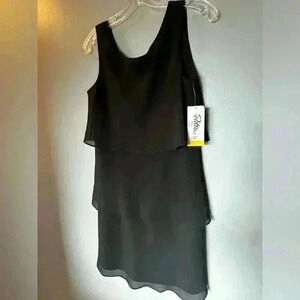 Patra Petite BLACK Formal Layered Dress, Mid Length. Size 6 NWT