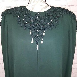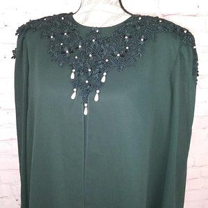 layer & the sleeves are a flowy sheer chiffon. It does have shoulder pads.