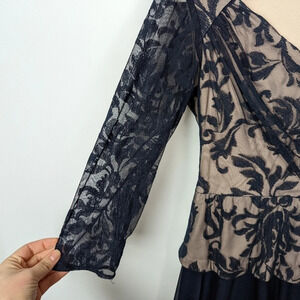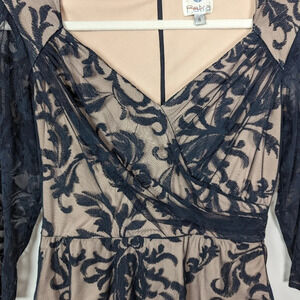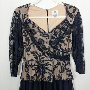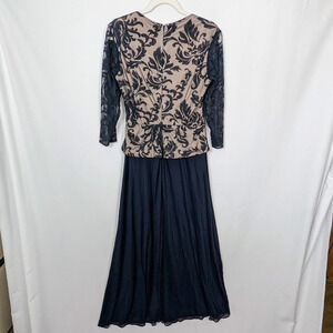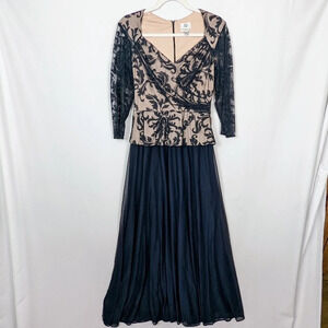 Patra sz. 6 Embroidered Floral Lace Mesh Maxi Dress Gown Black Tie Event Elegant