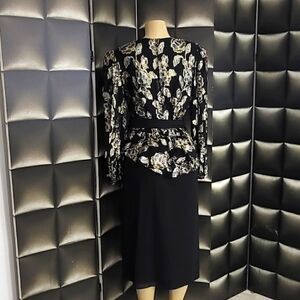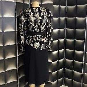Patra mettalic floral peplum polyester dress. amazing condition.