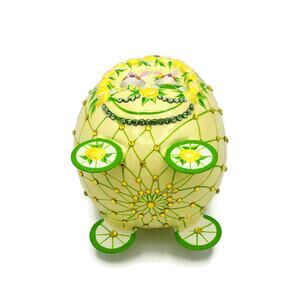 Patricia Breen Glorious Outing Yellow Green with Bunnies Egg Easter Spring Holiday Ornament adorned with Swarovski Crystals