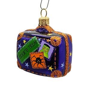 Patricia Breen Miniature Valise Halloween Purple Bats Christmas Tree Ornament
