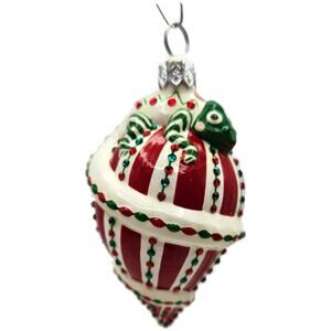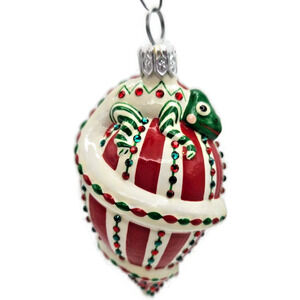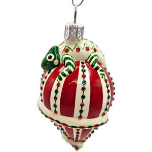 Patricia Breen Topping Chameleon Red Green Striped Christmas Tree Ornament
