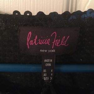 Patricia Field Black Sequins Model Faced Top Sz 4