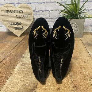 Patricia Green Elegant Antler Embroidered black Slippers Slip On Flats Shoes 6