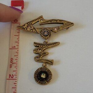 Patricia Locke Brooch And Earrings Gold Tone Swarovski Crystal Set 2" for the length of Brooch