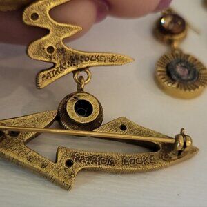 Patricia Locke Brooch And Earrings Gold Tone Swarovski Crystal Set 2" Br…
