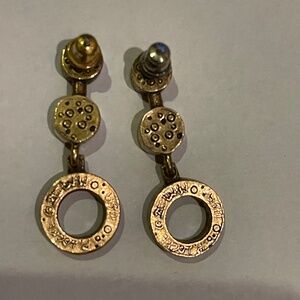 Gold, green, orange, pink drop earrings with back. About 1 inch drop.