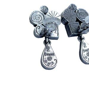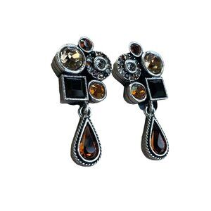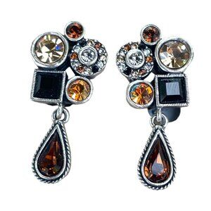These Patricia Locke designer earrings feature a striking combination of crystals and geometric shapes. Crafted with meticulous attention to detail, they offer elegance and sophistication.