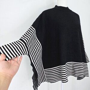 Patricia Luca Milano Black White Sweater Oversized Cape Poncho Knit Women One Size Mod LAgenlook