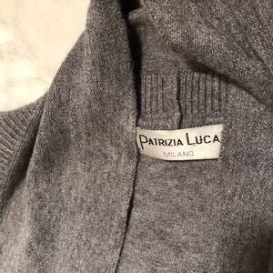 Long Sleeve Gray Open Sweater with Black Knit Sleeves and Back Flirty Pleated Insert. Pit to Pit 21”. Length Back 42”. Length Front 33”. Item 0422-3