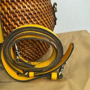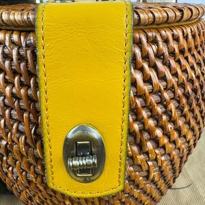 Patricia Nash 10th Anniversary Rare Yellow Wicker Basket Mirror Crossbody Purse.