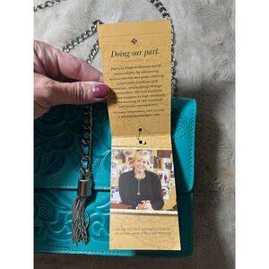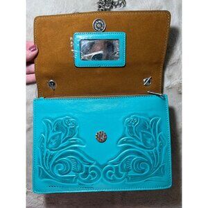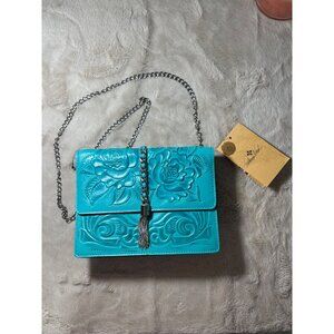 Patricia Nash Aqua Leather Rose Tooled Crossbody Bag With Chain Strap & Tassel