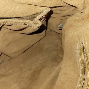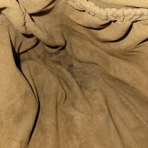 Preowned Has a few ink spots inside and scuffs outside. One little mark from the snap on the front pocket when you lift it up.