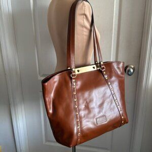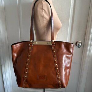 Patricia Nash Benvenuto Leather Stud Shoulder Handbag Tan Brown