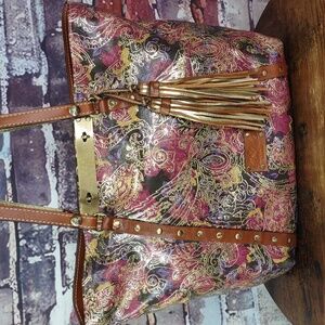 Patricia Nash "Benvenuto" metallic paisley tooled leather tote bag.