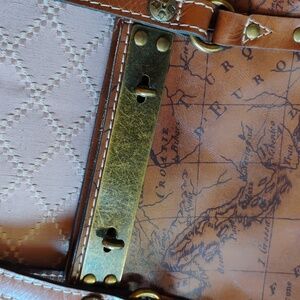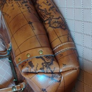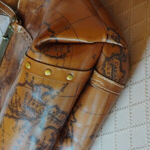 Gently used, like new, Patricia Nash Benvenuto leather map tote. Beautiful, old-world style map printed on 100% leather. This is a generous size tote(see pic for measurements) Many features to love about this tote including the beautiful brass hardware. Great for everyday use or take it on an adventurous holiday!