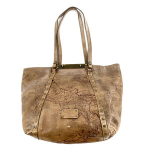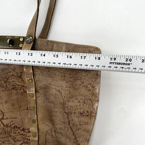 Patricia Nash Benvenuto Tote Signature Map Brown Leather Antique Brass Hardware