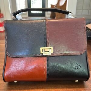 Patricia Nash Black and Brown Leather Satchel with Gold Clasp