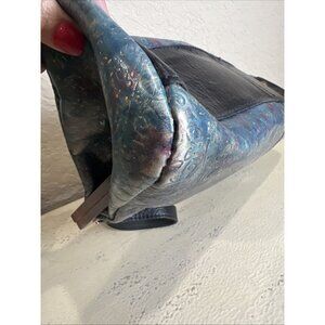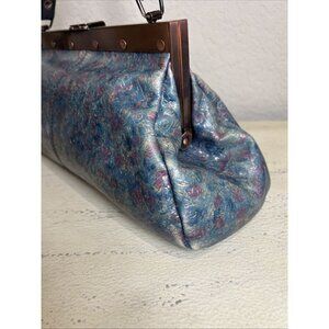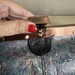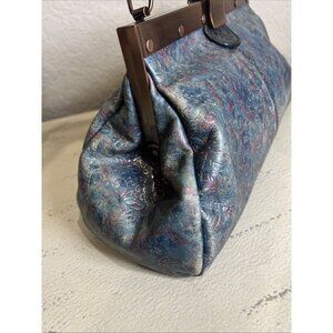 Patricia Nash Blue Embossed Floral Leather Snap Latch Doctor Style Shoulder Bag