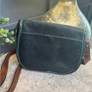 Patricia Nash Blue Green Teal Brown Italian Leather Chios Crossbody Saddle Bag