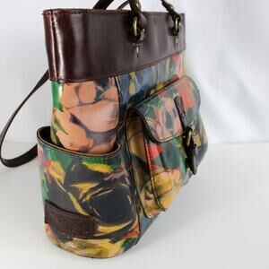Patricia Nash Bolsena Floral Leather Tote Shoulder Bag Brown Artsy Winter Bloom
