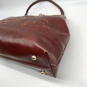 Patricia Nash Brown Leather Elsworh Floral Kiss Lock Shoulder Bag