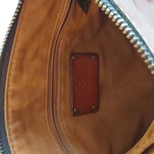 Patricia Nash Brown Premium leather Logo Zip Wristlet/Clutch Neutral Minimalist