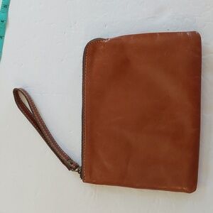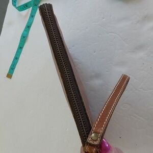 BROWN LEATHER ZIPPERED WRISTLET/ PURSE