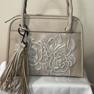 Patricia Nash Burnished Rose Tooled Leather Satchel 🌸 NWT