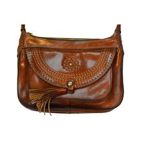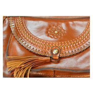 Patricia Nash "Camila" Leather Crossbody in Cognac Brown