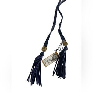 Patricia Nash Cara Leather Lariat Braided Necklace In Navy Blue