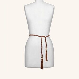 Wrap-around closure versatile braided leather necklace is finished with tassels and charms embellished with our signature grape leaf logo