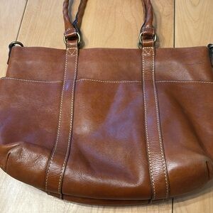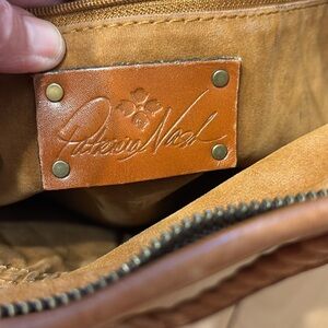 Patricia Nash Carducci leather tote. Zippered close. Internal zippered side pockets and two open pockets. Measurements are 15.5” W x 11.5” tall. Top handle drop is 8.5”. I don’t have the shoulder strap for this bag.