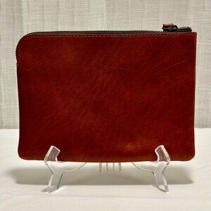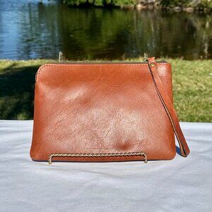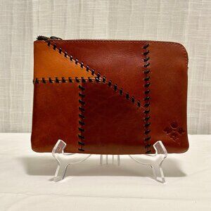 Patricia Nash Cassini Patchwork Leather Wristlet Brown Tan Statement Stitching