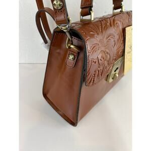 Patricia Nash Chauny Florence Tooled Leather Satchel Crossbody Handbag Brown 60s