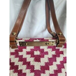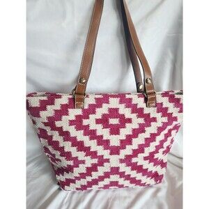 Patricia Nash Chennai Hand Woven Loom Tote Bag Purse Shopper Beach Magenta White Double Handle