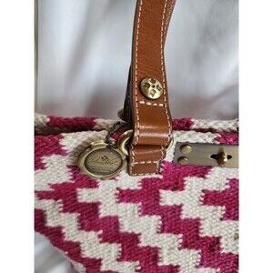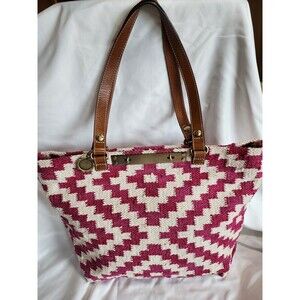 Patricia Nash Chennai Hand Woven Loom Tote Bag Purse Shopper Beach Magenta White