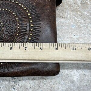Patricia Nash Leather Crossbody Bag Brown Tooled Embossed Medallion Adjustable Strap Studded Distressed Francesca
