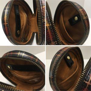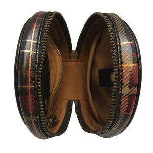 Patricia Nash Diamante Leather Round Zip Jewelry Case Bag Plaid Tartan Red Pouch