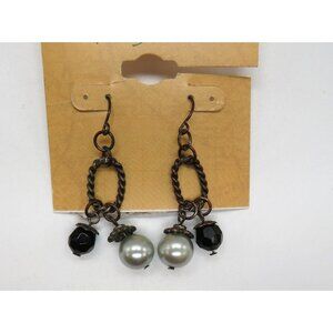 Patricia Nash Earrings Genuine Stone Dangle Earrings Chain Pearl Accents New